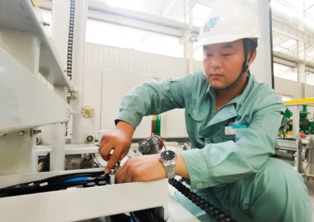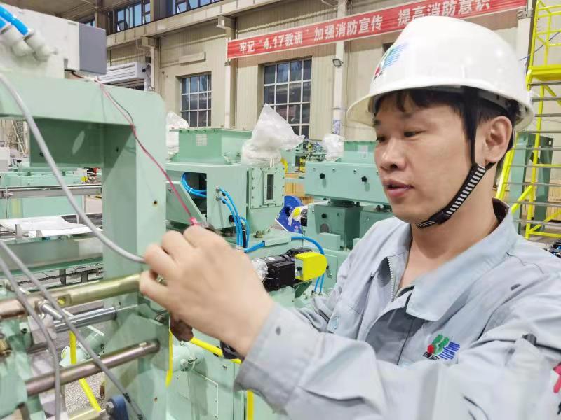 炎熱的中午,車間內(nèi)見到兩個汗流浹背忙碌的身影,原來是調(diào)試二組的張忠杰和張俊龍師傅。他們?yōu)榱粟s項目進度,不僅積極參與包宿工作,更犧牲個人午休時間,頂著炎熱的高溫進行設(shè)備調(diào)試趕工。