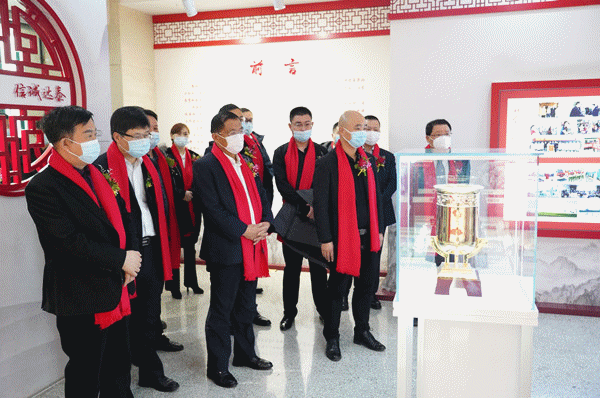 簽約儀式前,九家供應(yīng)商企業(yè)代表一同參觀了中泰集團(tuán)文化展廳和黨性教育基地,儀式后共同合影留念。