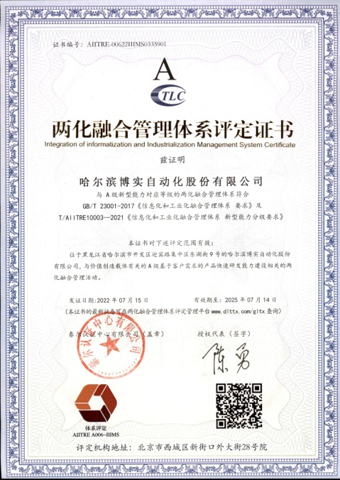7月15日,我公司獲得工信部“兩化融合管理體系評(píng)定證書(shū)"。