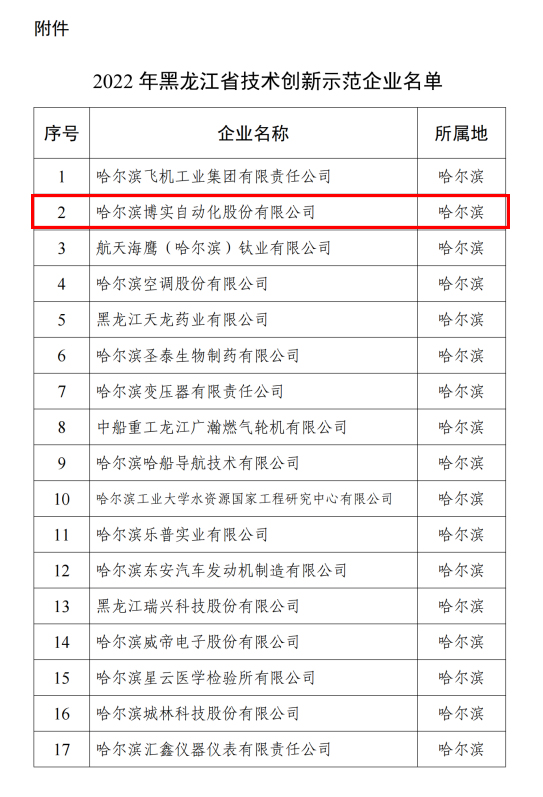 附件:2022年黑龍江省技術(shù)創(chuàng)新示范企業(yè)名單