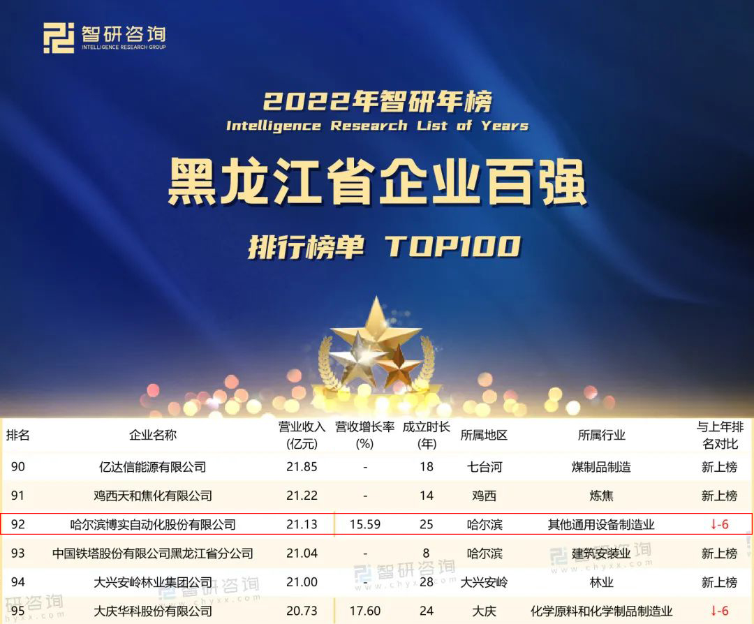 近日,黑龍江省企業(yè)聯(lián)合會發(fā)布2022年黑龍江企業(yè)100強(qiáng)榜單,智研咨詢數(shù)據(jù)中心推出《智研年榜:2022年黑龍江省企業(yè)百強(qiáng)排行榜單TOP100》,以供參考。
